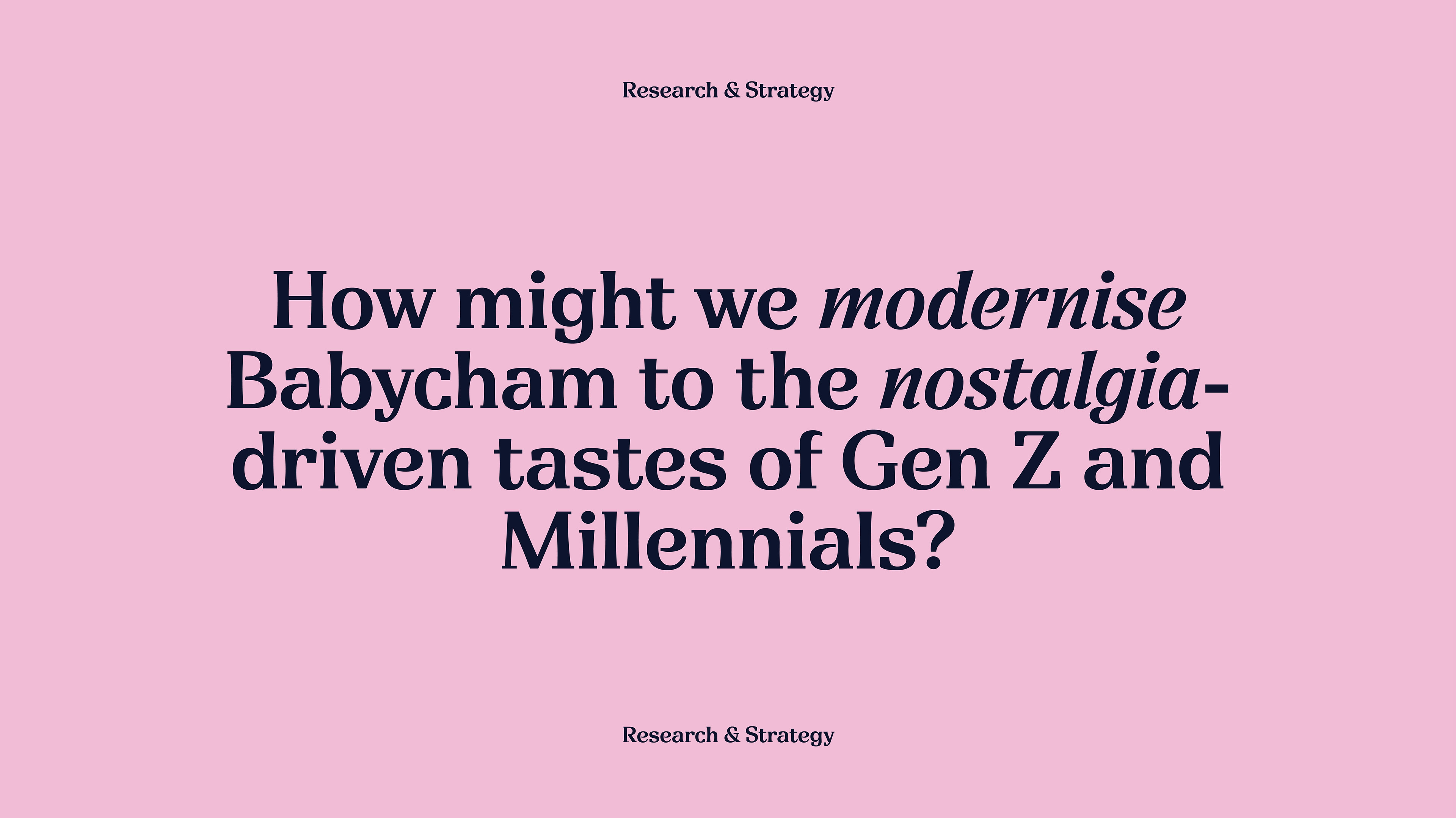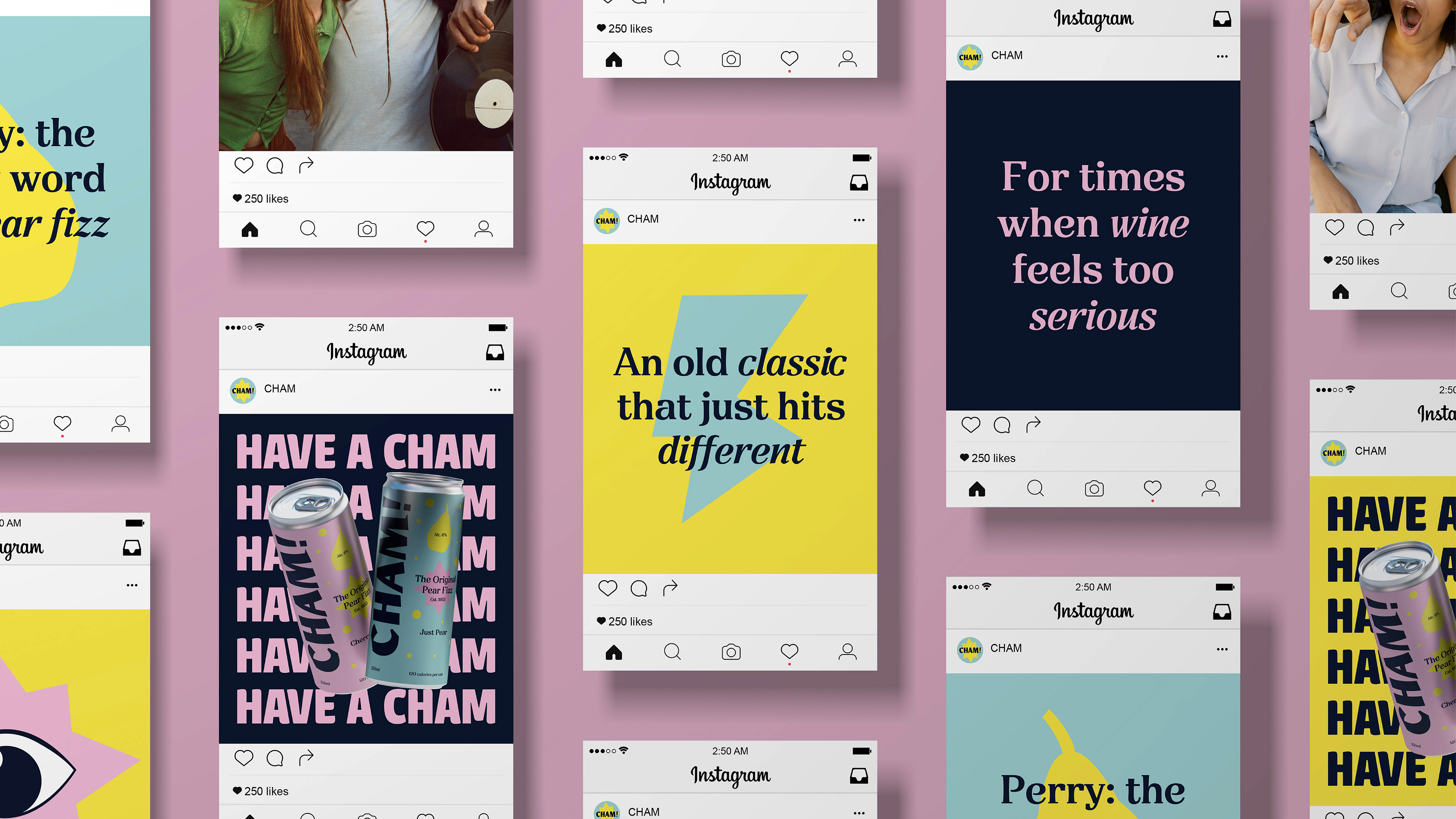 The new branding was inspired by the concept ‘A Retro Remix’, blending Babycham archive shapes with new additions. From research, Babycham has been compared to the taste of sparkling wine rather than cider so I chose to position it in this part of the alcohol market, but with a more laid-back and inclusive approach. With this in mind, I changed the packaging - the small wine-like bottle has been replaced with a 250ml can.